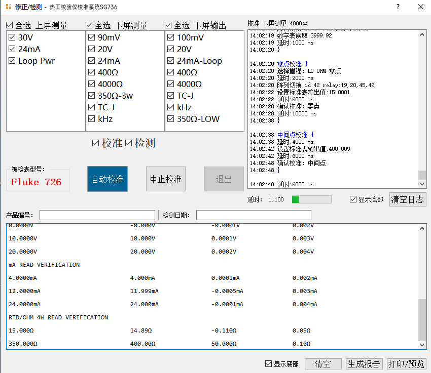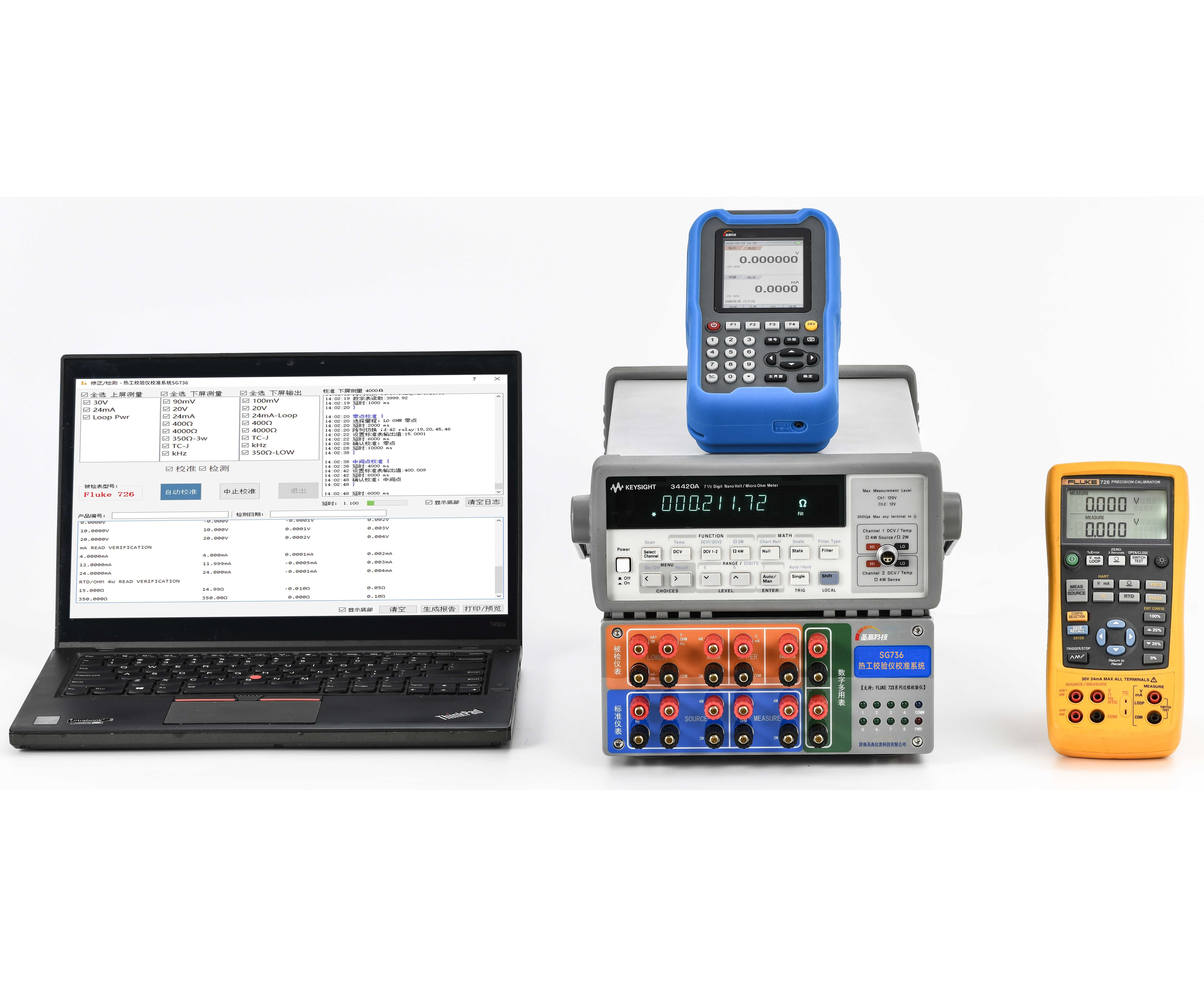 SG736热工校验仪校准系统是专为Fluke72X系列过程校验仪设计的新一代智能校准平台,集自动化校准、智能检测、数据管理于一体。本系统采用模块化设计,实现全程无人干预的高效校准,20分钟即可完成Fluke72X的完整校准、检测并输出校准报告,校准精度高达0.01级,为工业仪表生产提供可靠的质量保障。